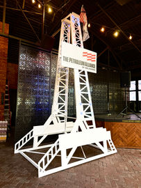 A 16ft tall model oil derrick with custom signage and lighting made for OERB's booth at the 2024 Oklahoma Oil & Gas Expo in OKC.